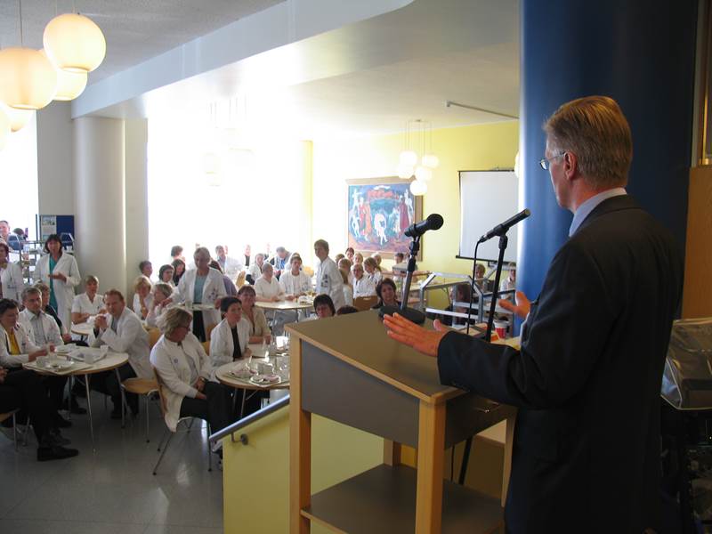 Ég býð starfsmenn spítalans innilega velkomna, einnig stjórnarnefnd spítalans, háskólarektor og forseta læknadeildar og hjúkrunarfræðideildar sem eru gestir okkar á þessari stundu.