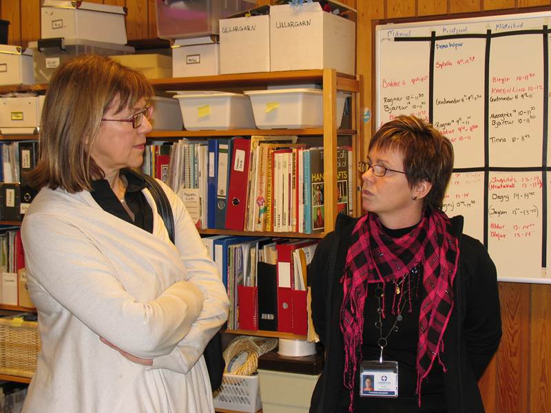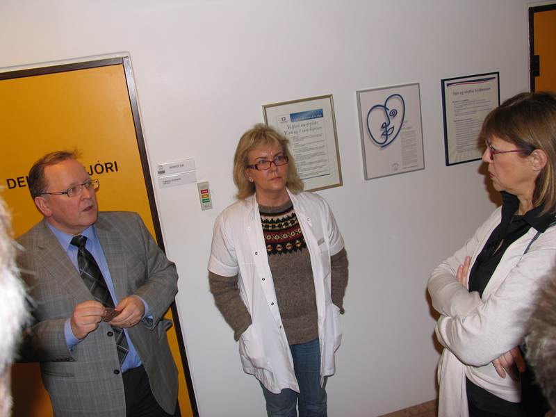Mynd úr heimsóknar heilbrigðisráðherra fyrir ofan: Álfheiður Ingadóttir heilbrigðisráðherra í heimsókn á Landspítala 7. janúar 2010. Hér er hún á bæklunarskurðlækningadeild B5 ásamt deildarstjóranum, Ingibjörgu Hauksdóttur, Ragnheiði Haraldsdóttur skrifstofustjóra í heilbrigðisráðuneytinu, Halldóri Jónssyni jr. prófessor, og Birni Zoëga bæklunarskurðlækni og forstjóra Landspítala