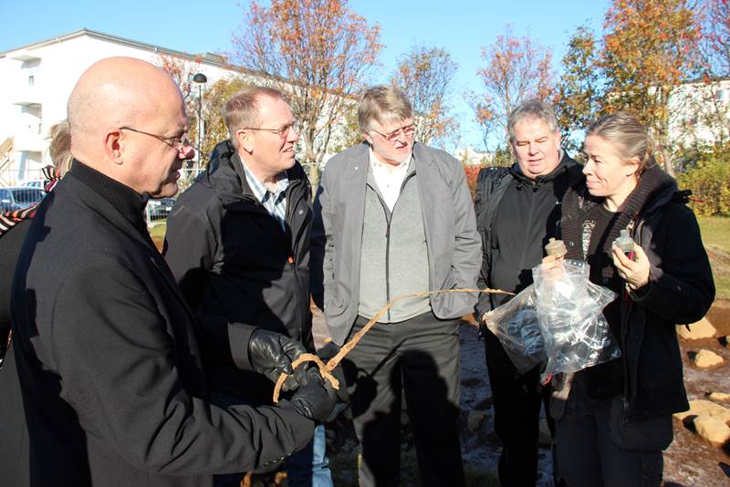 Fornleifafræðingarnir sem unnu að fornleifauppgreftri framan við aðalbyggingu Landspítala sumarið 2011 sýndu starfsfólki Landspítala og fulltrúum þeirra sem unnu að undirbúningi byggingar nýs Landspítala bæði staðinn og og það sem hafði fundist. Myndirnar voru teknar 12. október 2010.