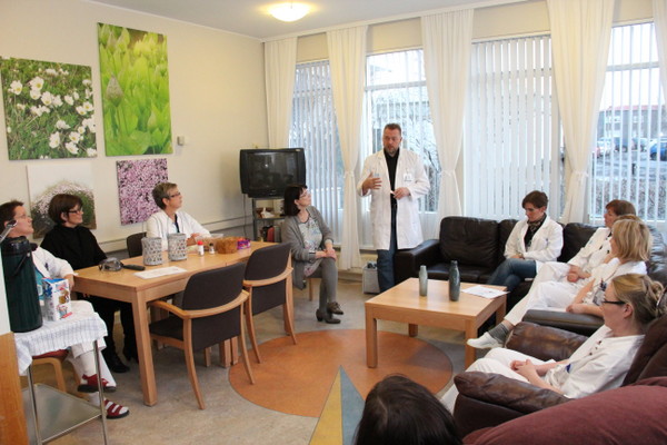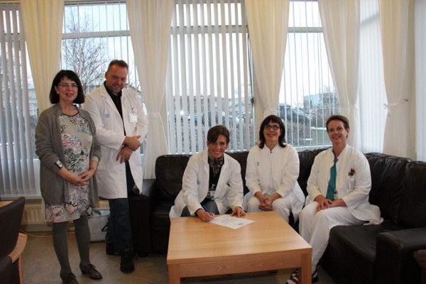 Ólafi Guðlaugssyni sérfræðilækni og Ásdísi Elfarsdóttur deildarstjóra um handhreinsunarverkefnið. |
