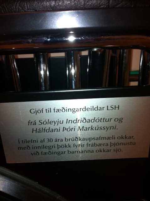 Fæðingardeild Landspítala hefur fengið að gjöf flutningshjólastól. Systkinin Hanna Sesselja, Bára Fanney, Árný Þóra, Margrét Rósa, Sylvía Rún, Róbert Ingi og Dagbjört Gyða gáfu stóllinn í nafni foreldra sinna, Hálfdans Þóris Markússonar og Sóleyjar Indriðadóttur, í tilefni af 30 ára brúðkaupsafmæli þeirra.