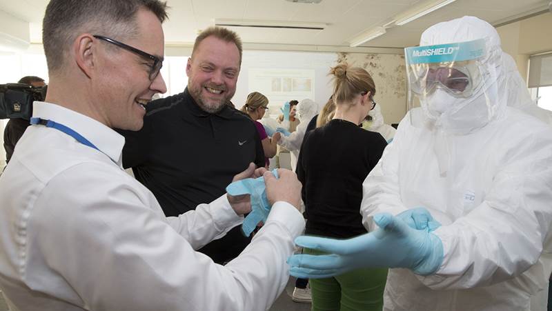 Stór hópur starfsmanna á Landspítala hefur að undanförnu verið þjálfaður til þess að nota hlífðarbúnað vegna ebólu.