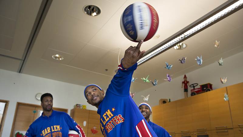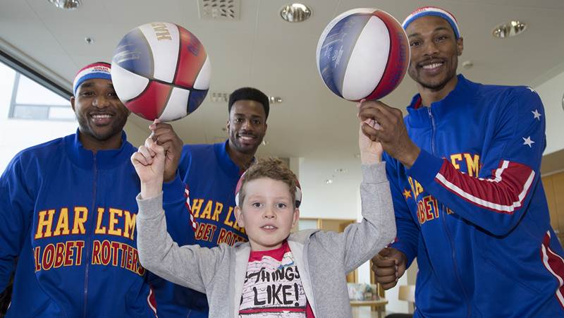 Nokkrir liðsmenn hins heimsfræga sýningar- og körfuboltaliðs Harlem Globetrotters heimsóttu börn á Barnaspítala Hringsins 24. mars 2014 og léku listir sínar fyrir þau og með þeim. Gestirnir gerðu mikla lukku og börnin urðu himinsæl að fá af sér mynd með þeim.