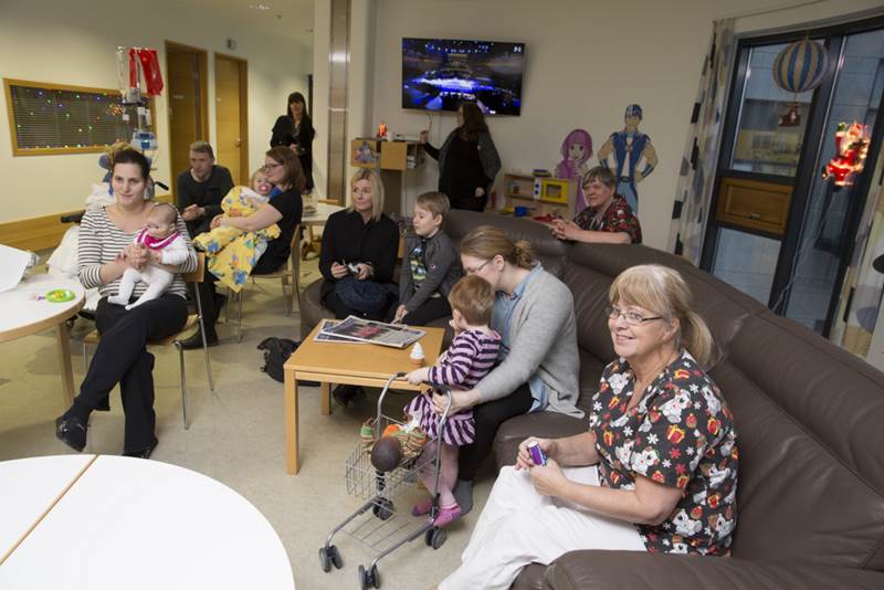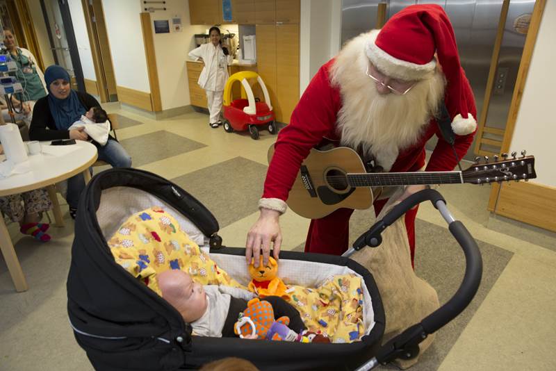 Margir koma til dæmis þangað og á aðrar deildir barnaspítalans í heimsókn til að gleðja börnin með gleði og söng og færa gjafir. Sumir gestanna eru í rauðum búningum með hvítt skegg!