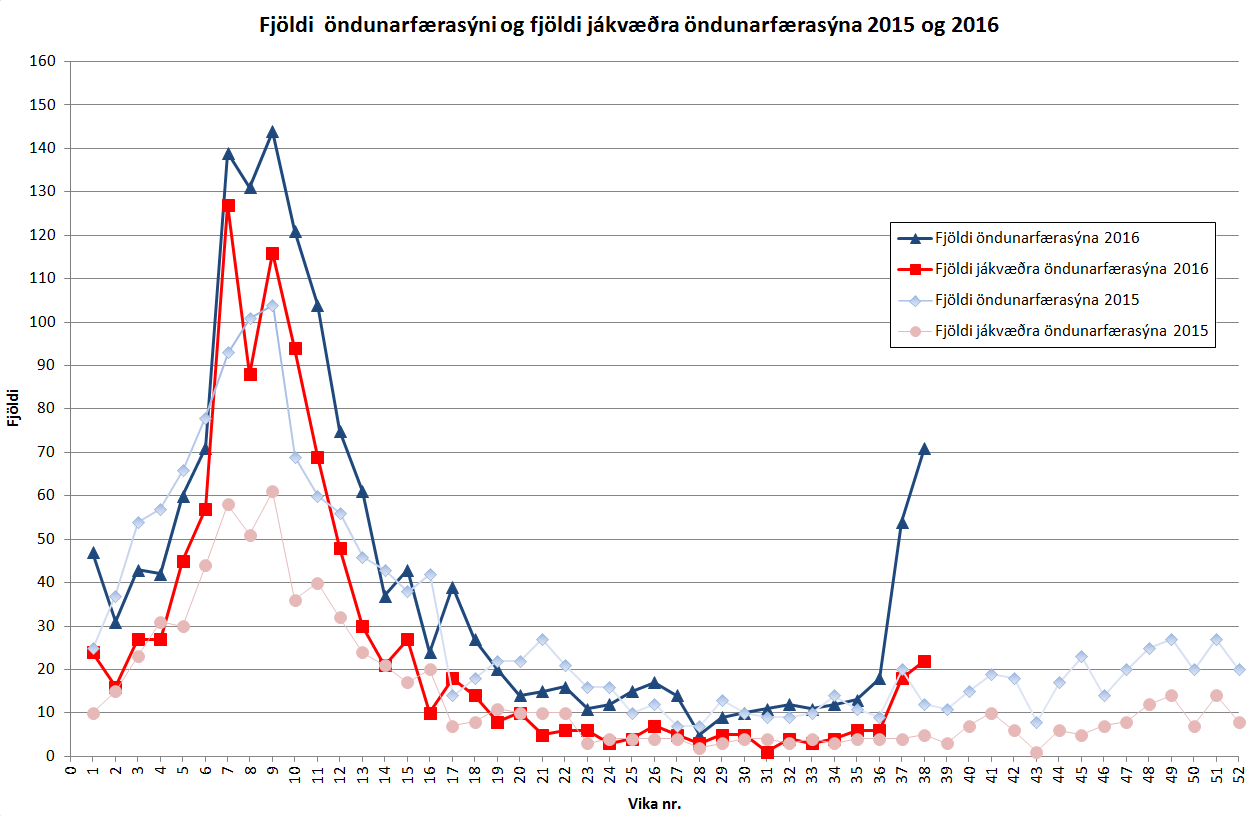 Í haust voru fyrstu tilfelli inflúensu óvenju mörg og óvenju snemma, en 7 sýni reyndust vera A(H3) jákvæð í byrjun september (vika 37). Enn á eftir að koma í ljós hvort þetta sé byrjunin á árlegum faraldri.