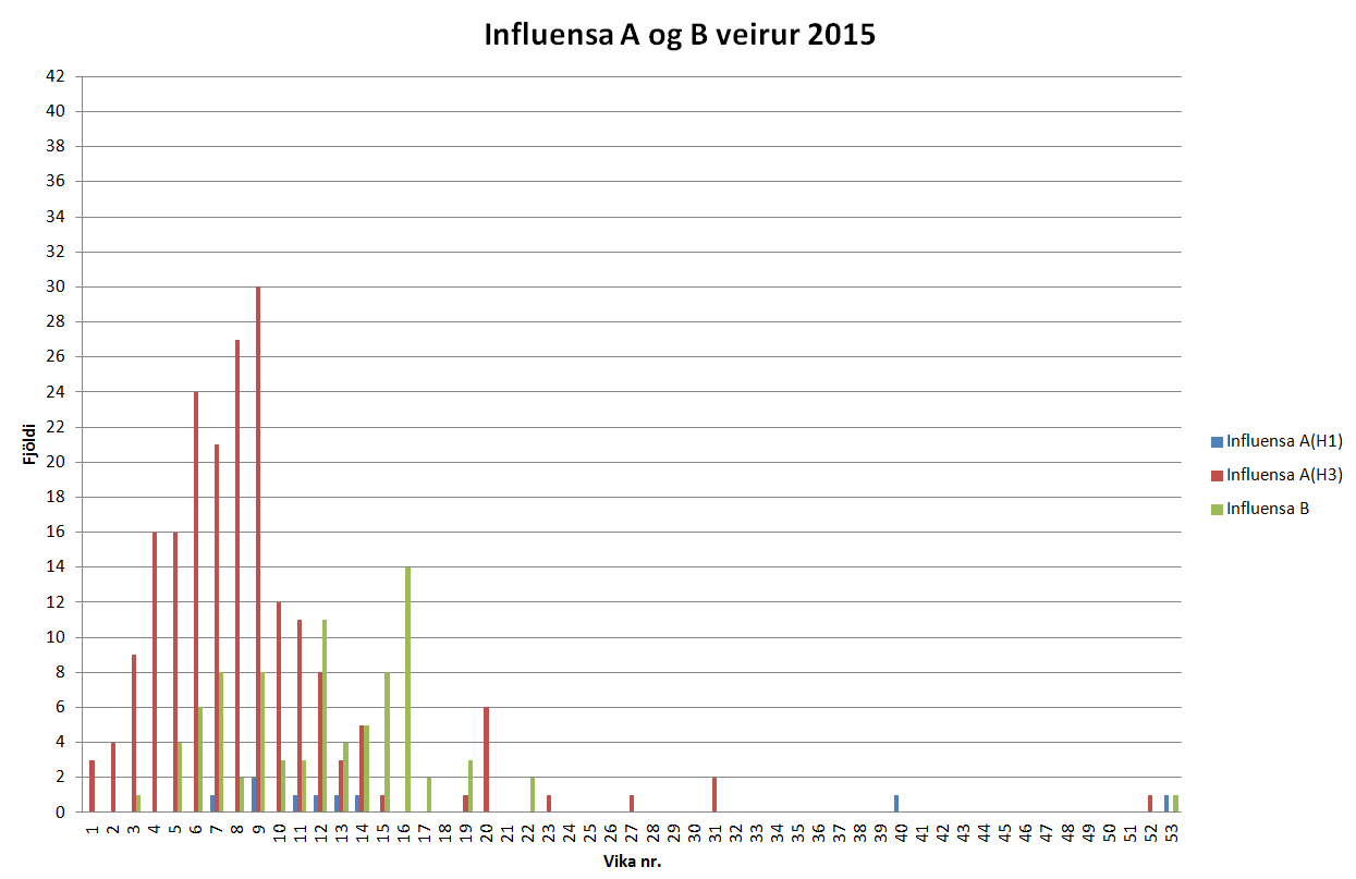 Fyrstu tilfelli inflúensu veturinn 2014-2015 greindust um miðjan desember 2014. Þann vetur voru voru flest inflúensutilfelli af stofni A(H3), en síðastliðinn vetur (2015-2016) voru flest tilfelli af stofninum A(H1).