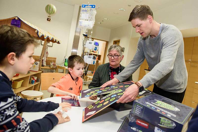 Í tilefni þess að 1. desember 2017 var dregið í riðla fyrir heimsmeistaramótið í knattpyrnu í Rússlandi ákvað landsliðsmaðurinn Jóhann Berg Guðmundsson, einn af höfundum „Beint í mark“, að senda krökkum sem dvelja á Barnaspítala Hringsins fótboltaspilið að gjöf. Krakkarnir fengu nokkur eintök af Beint í mark en þar á meðal var eitt áritað af Jóhanni, Gylfa Þór Sigurðssyni og Aroni Einari Gunnarssyni.