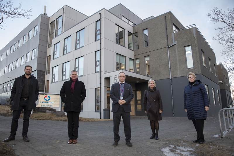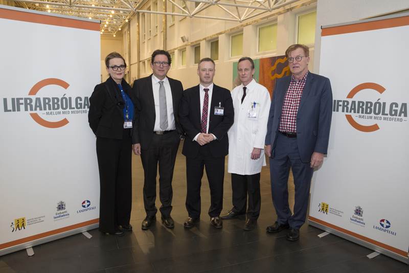 Vigdís Hallgrímsdóttir forstöðumaður krabbameinsþjónustu, Guðrún Björg Sigurbjörnsdóttir, Páll Matthíasson, Vaka Ýr Sævarsdóttir krabbameinslæknir, Hanna Björg Henrysdóttir deildarstjóri, Jakob Jóhannsson yfirlæknir..