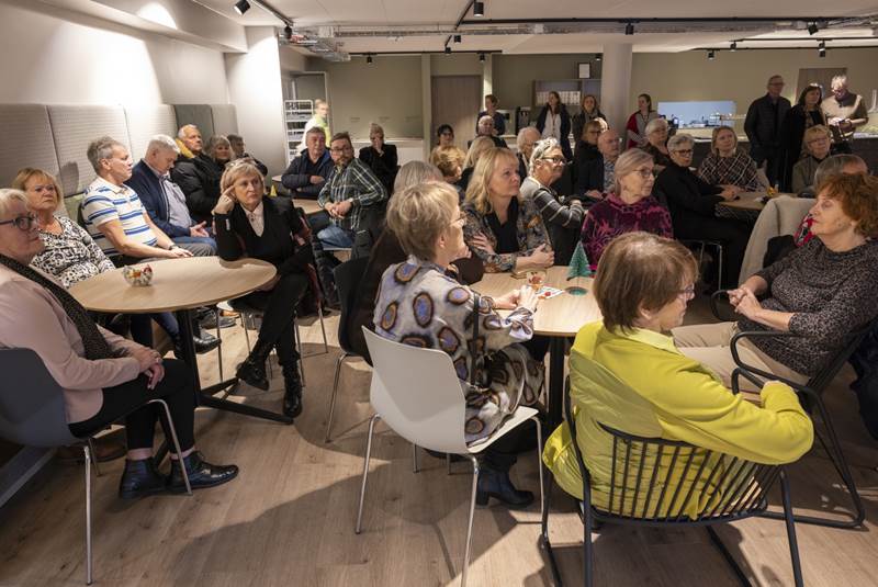 Móttakan, sem haldin var í matsal skrifstofu Landspítala við Skaftahlíð, var virkilega hátíðleg stund þar sem bornar voru fram veitingar, fólk spjallaði um liðna tíð og lífið framundan og Guðrún Árný söngkona skemmti að sínum hætti með ljúfum tónum.