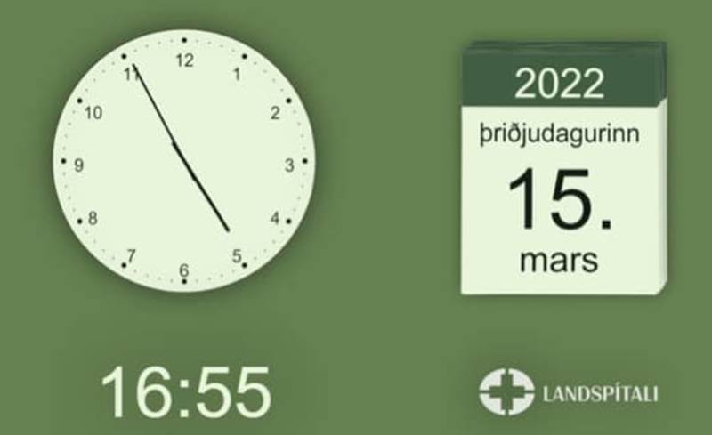 Fólk í óráði missir gjarnan tengingu við raunveruleikann og til að hjálpa því er beitt svokallaðri raunveruleikaglöggvun sem felst í því að gera grein fyrir stund og stað. Klukkur og dagatöl geta verið hjálpleg, á Landspítala er í þessum tilgangi haft dagatal, klukka og lógó spítalans á sjónvarpsrás 50 á sjúkrastofum, eins og sýnt er á myndinni fyrir neðan.