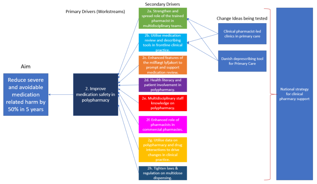 A working group from Landspítali and Primary Care has been convened to develop a national strategy for clinical pharmacy support. Currently in Iceland there are too few qualified clinical pharmacists to provide consistent and widespread support to multidisciplinary clinical teams to improve medication safety in polypharmacy.