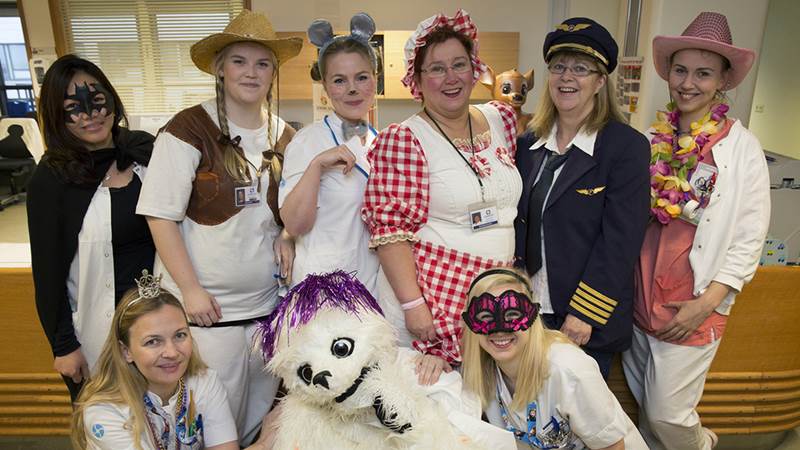 Hringur ísbjörn fór mikinn þegar hann leit inn til barnanna á Barnaspítala Hringsins á öskudeginum 17. febrúar 2015. Þessi góðviljaði ísbjörn á það til að koma og stytta börnunum á barnaspítalanum stundirnar og er alltaf vel fagnað. Núna var Hringur svolítið „skreyttur“ í tilefni öskudagsins en hann var nú ekki einn um það. Ýmsir höfðu farið í dulargervi í tilefni dagsins.
