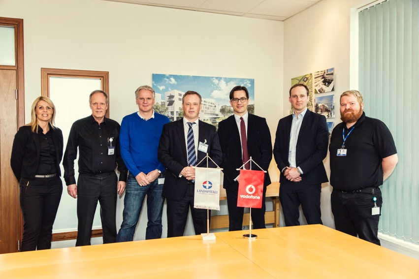 Á mynd: Margrét Einarsdóttir, viðskiptastjóri fyrirtækjaþjónustu Vodafone, Kristján Valdimarsson, verkefnastjóri á innkaupadeild Landspítala, Björn Jónsson, deildarstjóri heilbrigðis- og upplýsingatæknideildar (HUT) á Landspítala, Páll Matthíasson, forstjóri Landspítala, Stefán Sigurðsson,forstjóri Vodafone, Trausti Guðmundsson, forstöðumaður fyrirtækjaþjónustu Vodafone og Hans Orri Straumland, hópstjóri net- og símkerfa á HUT.