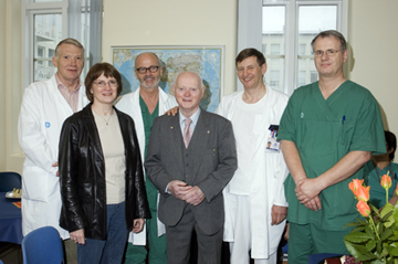 Árið 2006 þegar 20 ár voru liðin frá fyrstu hjartaskurðaðgerðinni á Landspítala var Valgeiri G. Vilhjálmssyni, sem gekkst undir aðgerðina, boðið til hófs á skurðlækningadeild spítalans. Á myndinni eru Hörður Alfreðsson læknir, Herdís Alfreðsdóttir hjúkrunarfræðingur, Bjarni Torfason yfirlæknir, Valgeir G. Vilhjálmsson, Þórarinn Arnórsson læknir og Hjörtur Sigurðsson læknir.