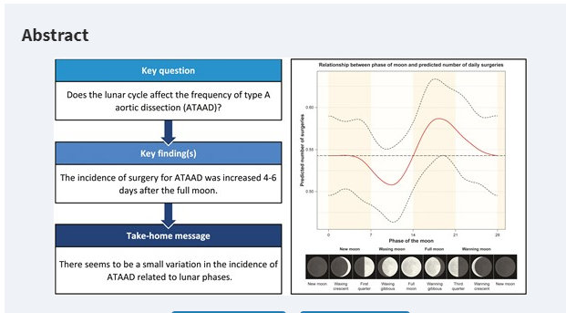 Í ljós hefur komið að tíðni skurðaðgerða við lífshættulegri flysjun í brjóstholshluta ósæðar var marktækt meiri fyrstu dagana eftir fullt tungl. Aukningin var þó tiltölulega lítil og orsakasambandið ekki augljóst og því talin þörf á frekari rannsóknum á viðfangsefninu. Í Interactive CardioVascular and Thoracic Surgery hefur verið birt vísindagrein um þetta sem íslenskir hjartaskurðlæknar komu að í samstarfi við 20 aðra kollega á 7 öðrum háskólasjúkrahúsum á Norðurlöndum.