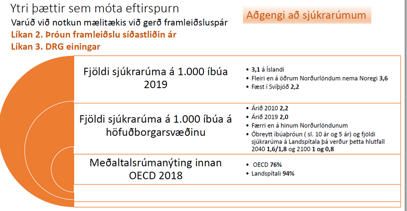 Hvað er þá til ráða? Jú, auðvitað þarf sífellt að vera að vinna í bættum ferlum og margt það stærra sem verið er að vinna í mun skila árangri, eins og t.d. styrking göngudeilda, betri mönnunarmódel og fjölgun rúma. Til lengri tíma, þá er verið að vinna mat á þörf Íslands fyrir þjónustu Landspítala til næstu 20 ára og mun það mat ráða því hvernig hið gríðarmikilvæga Hringbrautarverkefni þróast áfram auk þess að verið er að meta mönnunarþörf næstu áratuga í heilbrigðisþjónustu.