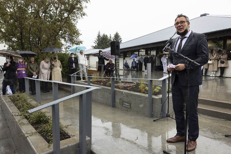 Hollvinasamtök Grensásdeildar afhentu formlega nýjan og endurbættan garð við endurhæfingardeildina að Grensási að viðstöddum heilbrigðisráðherra.