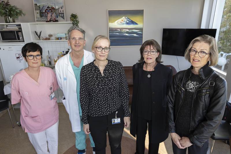Ásta Júlía Björnsdóttir, deildarstjóri 12G, Tómas Þór Kristjánsson, yfirlæknir hjarta- og lungnaskurðdeildar, Ingibjörg Kristjánsdóttir, eiginkona Gunnars heitins og tvær systur Gunnars, Rósa Mýrdal og Rikka Mýrdal.