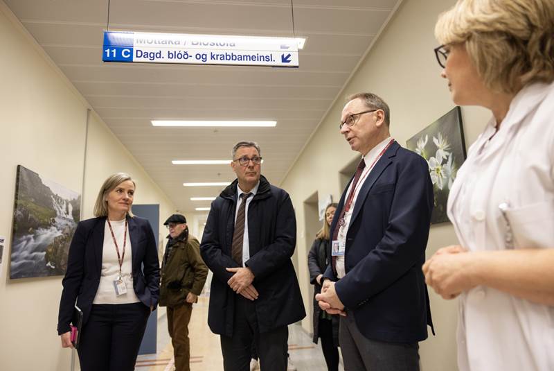 Heilbrigðisráðherra fræddist um allt þetta af stjórnendum og starfsmönnum Landspítala og skoðaði jafnframt teikningar af mögulegri bráðabirgðalausn á húsnæðisvanda deildarinnar sem yrði í formi léttrar viðbyggingar við gamla spítalann. (W-álma svonefnd).