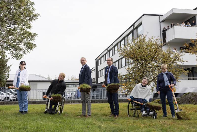 Heilbrigðisráðherra, Willum Þór Þórsson, tók fyrstu skóflustunguna að nýrri viðbyggingu við Grensásdeild. Auk ráðherra tóku skóflustunguna Runólfur Pálsson forstjóri Landspítala, Svava Magnúsdóttir, fulltrúi Hollvina Grensásdeildar, Arnar Helgi Lárusson formaður SEM samtakanna svo og starfsmenn Grensásdeildar, þær Guðbjörg Efemía Magnúsdóttir og Eiríksína Kr. Hafsteinsdóttir.