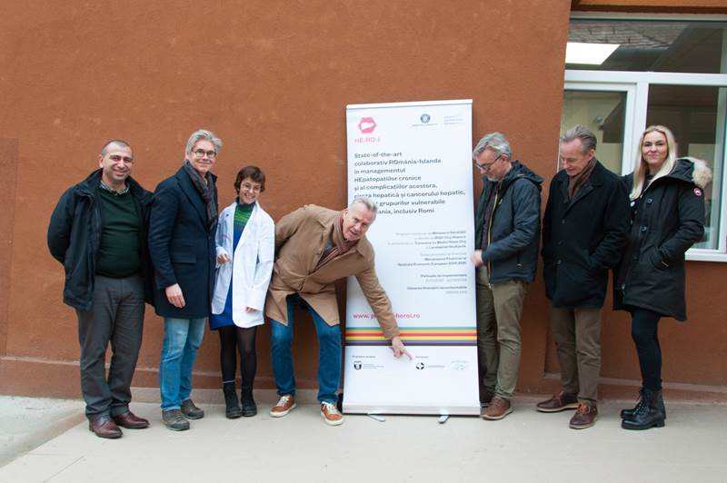 Á myndinni hér að ofan má sjá hópinn frá Landspítala ásamt rúmenskum kollegum. Frá vinstri: Magnús Gottfreðsson, Einar Stefán Björnsson og Sigurður Ólafsson. Eyrún Steinsson er önnur frá hægri.